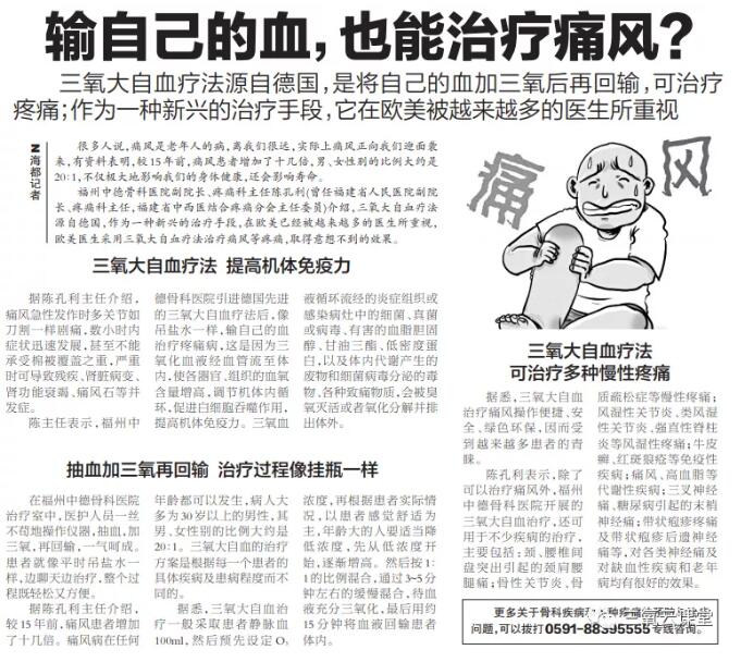 当前位置:臭氧治疗仪 >> 新闻中心 >> 三氧自体血回输:输自己的血,也能治疗痛风? |