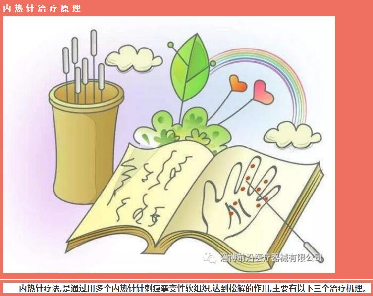(1)松解肌肉痉挛。 (2)消除炎症反应。 (3)改善局部的微循环。 内热针较大的直径,造成软组织不同程度的创伤,通过创伤愈合的病理过程,诱导骨骼肌再生和再血管化,改善病变肌肉的血液循环,达到长久治疗效果的作用。内热针通过整个针体均匀可控的温度,传达到骨膜等深部软组织末端,起到消除肌筋膜无菌性炎症的作用。