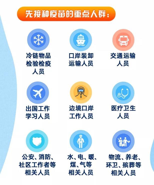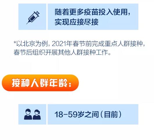 近日,我国首批新冠病毒疫苗开始在北京、山东等地对重点人群进行接种。疫苗需要打几针?适用于哪些人群?打完后能不能摘口罩?出现不良反应怎么办?今天,通过一组图,一起了解↓↓↓