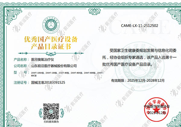 祝贺前沿医疗6款医用臭氧治疗仪,成功入选中国医学装备协会评选的第十一批优秀国产医疗设备名单!
